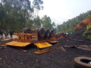 Ikamyo yari itwaye amakara iyavanye muri Tanzania iyajyanye mu ruganda rwa Sima ruherereye mu Karere ka Rusizi, yakoze impanuka igeze mu Mudugudu wa Ruvumbu, Akagari ka Buvungira, Umurenge wa Bushekeri, Akarere ka Nyamasheke, umushoferi wari uyitwaye ayipfiramo.