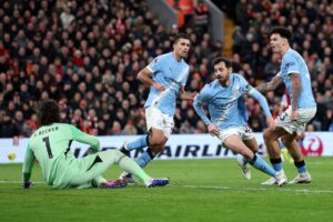 Manchester City yabonye intsinzi ikomeye itsinze Liverpool ibitego 2-1 mu mukino w’umunsi wa 25 wa Shampiyona y’u Bwongereza wabereye kuri Anfield Road ku Cyumweru, tariki ya 8 Gashyantare 2026.