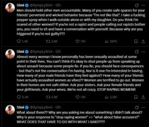 Mu magambo yuzuyemo uburakari, Simi yasabye ibihano bikomeye cyane ku bakora ibyo byaha, agaragaza ko bikwiye gukumirwa mu buryo bukakaye. Yibanze ku kurengera abana n’abagore, avuga ko benshi mu bakobwa n’abagore azi cyangwa yamenye bagiye bahura n’ihungabana riturutse ku ihohoterwa rishingiye ku gitsina.