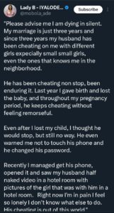 Umugore wo muri Nigeria yateje impaka ku mbuga nkoranyambaga nyuma yo gusangiza inkuru ibabaje y’urugo rwe aho avuga ko umugabo we amuca inyuma kandi akabikora buri gihe abikorana n’abakobwa batandukanye.