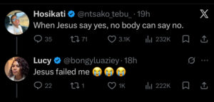 Bamwe mu bagize icyo bavuga kuri ubwo butumwa bw’uwo mugore harimo n’uwitwa Tebu wagize ati:”Iyo Yesu yavuze ngo Yego ntawe uvuga ngo ‘Oya’. Maze ahita amusubiza ngo “Yarantengushye”.